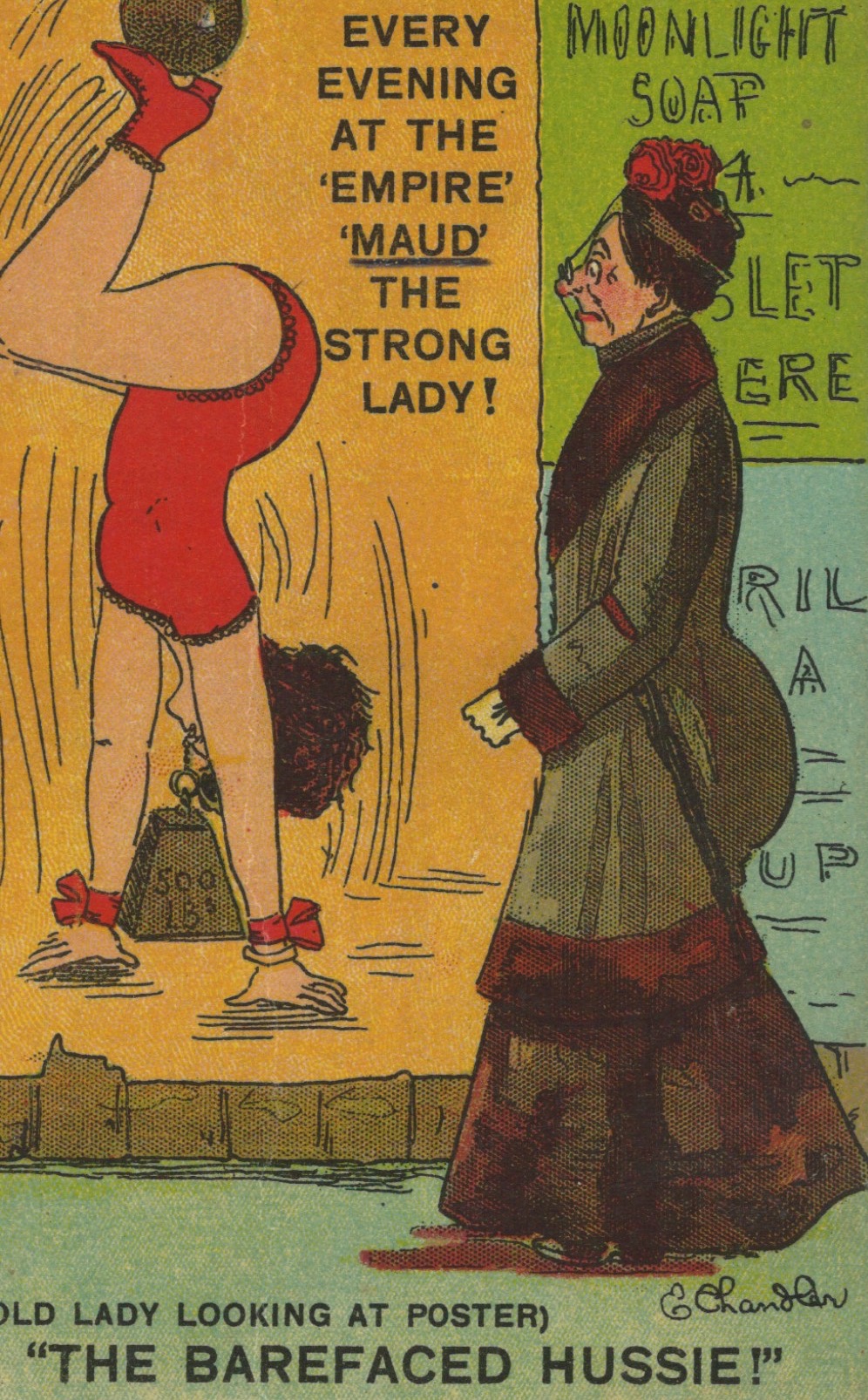 In 1909 the unfortunate Miss Charlesworth appeared at the Islington Hippodrome (later Collins), the Canterbury and the Paragon. On each occasion a gentleman introduced her and took a long time over it, to the displeasure of the audience. When Miss Charlesworth finally appeared she was greeted with a cacophany of boos and hisses and declared herself too nervous to to sing. She bowed to the audience before leaving the stage to the sound of sarcastic laughter. Fortunately this was not the experience of all music hall performers although their reception could vary from hall to hall. Marie Lloyd, much loved in London, was given an unenthusiastic reception in Bradford but gave as good as she got by not responding to an encore at the finish. TS Eliot noted that he had seen Nellie Wallace ’interrupted by jeering or hostile comment from a boxful of East-enders’ but he had never known Marie Lloyd to be confronted by hostility. He also notes that Nellie Wallace made a quick retort that silenced her hecklers.