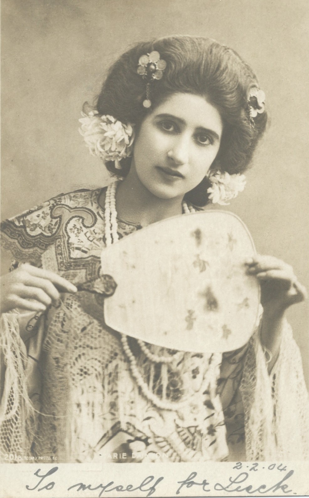 When postcards became the rage in the early 1900s music hall artistes were well represented and their fans collected the cards and sent them with messages of their everyday lives. In 1906 Mrs Baldwin hopes to see Vesta Tilley a week on Monday while a couple of years earlier Miss Gordon looked forward to seeing ’this Lady’ in all her latest successes. Ted saw Vesta Tilley at the Hippodrome (postmark blurred) and sends a card saying ’this girl was one of the soldiers who sang some songs.’ Ada Reeve is described as a nice girl – ‘not half’ by THH when writing to Miss Caley in 1905 and Florrie writes to Ethel to say she went to the Palace in Hull and bought the postcard of Gertie Gitana, ’the star artist.’ These audiences probably restrained themselves from throwing rotten food at the stage but showed their feelings nevertheless by joining in with chorus songs, wild applause and a bit of heckling. They had their favourites and sang and whistled their songs as they went about their business, secure in the feeling they had found a place where they belonged.