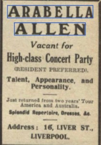 In an interview in the trade magazine, The Era, Maggie revealed she made her first appearance in a pantomime in her early childhood at the Adelphi Theatre, Liverpool. Her salary was three shillings a week and she was expected to provide her own boots. She disagreed with people who thought it wrong that children should act in pantomime saying ‘Tis very often delightful to the youngsters – – pantomime children are very often taken from poverty-stricken surroundings and taught the rudiments of an art that may bring them fame and fortune.’ The interviewer saw this as her opinion but it could have been her own experience.